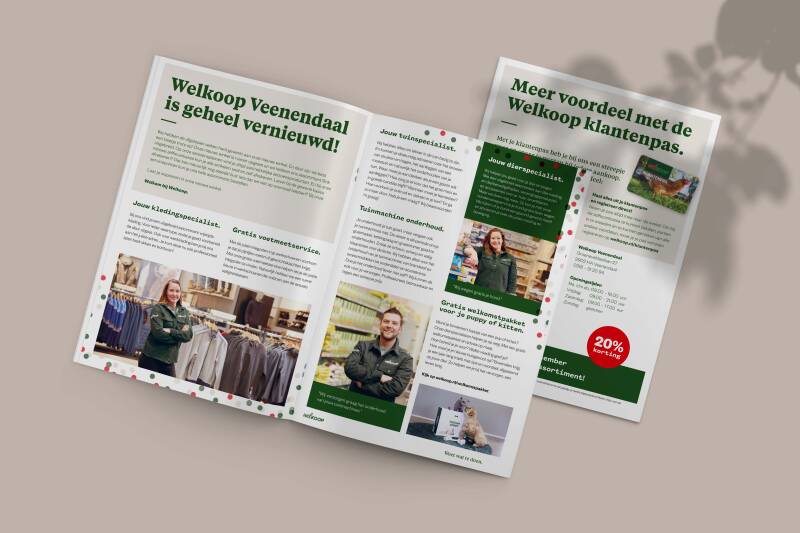 Voor opdrachtgevers als PLUS en Welkoop heb ik me intensief beziggehouden met het ontwikkelen van folders en winkelmaterialen. Denk hierbij aan POS-materialen, campagnemiddelen, actiekaarten. Verder heb ik ook veel ander drukwerk mogen verzorgen, zoals openingsmaterialen, gidsen, beursflyers en informatie voor klant. Daarnaast heb ik verpakkingsontwerpen mogen maken voor uiteenlopende producten van onder andere Welkoop en Action.